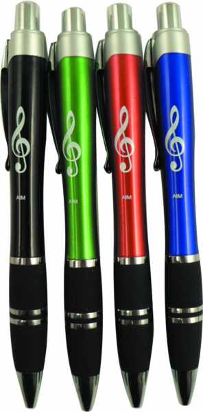 Sol anahtarlı, farklı renk seçenekleri olan tükenmez kalem.