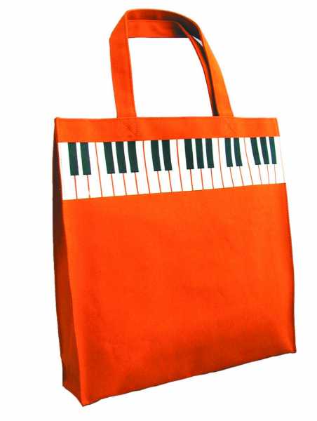 Kanvas kumaş, turuncu zemin üzerine üst kısmı tuşe desenli taşıma çantası.