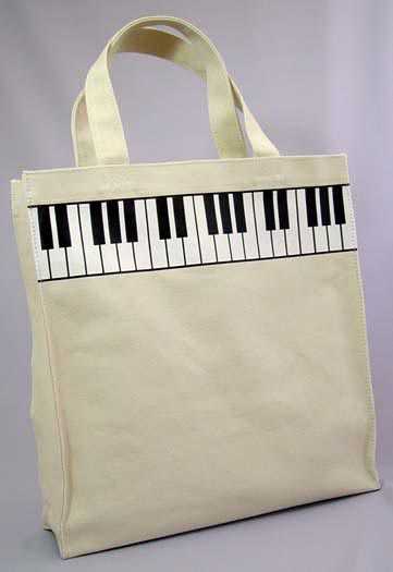 Kanvas kumaş, krem zemin üzerine üst kısmı tuşe desenli taşıma çantası. Boyutlar: 34 x 35 x 8 cm. Japon yapımı Müzikseverler için çantalar Tuşeli hediyelik çanta Made in Japan