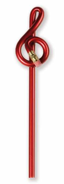 Kırmızı renkli, sol anahtar şeklinde, silgili kurşun kalem.