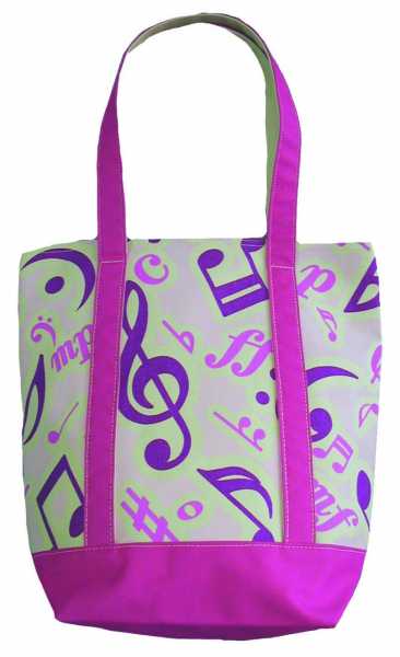 Polyester kumaş, krem zemin üzerine pembe nota vs. desenli çanta.
