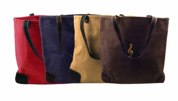 Üzerinde sol anahtarı bulunan, gri renkl, kanvas kol çantası.