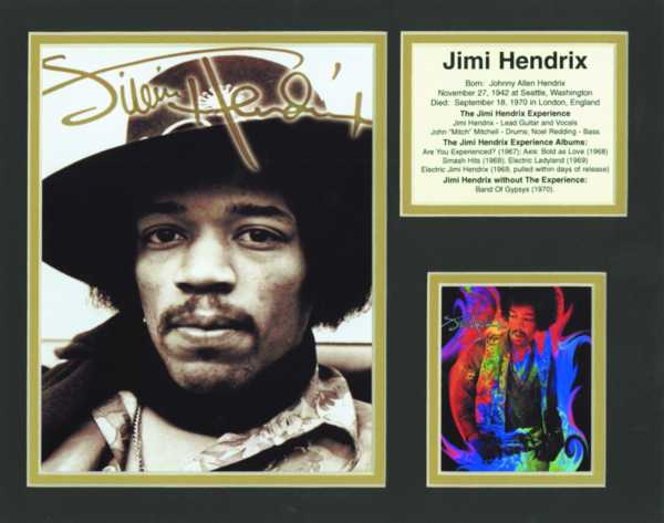 Jimi Hnedrix'in iki farklı fotoğrafı ve kısa biyografisinden oluşan poster.
