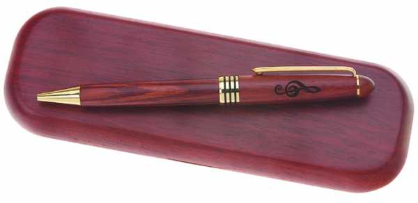 Fa anahtarı baskılı, kahverengi, tükenmez kalem. Gül ağacından ahşap kutusunda.