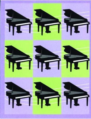 9 tane kuyruklu piyanolu mor - yeşil not kartı.