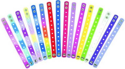 Renkli plastik ayarlanabilir bileklikler. Pembe, turkuaz, mor, pastel, turkuaz, kırmızı, mavi, fuşya, açık pembe, sarı, açık yeşil, beyaz ve lavanta renkleri bulunmaktadır.