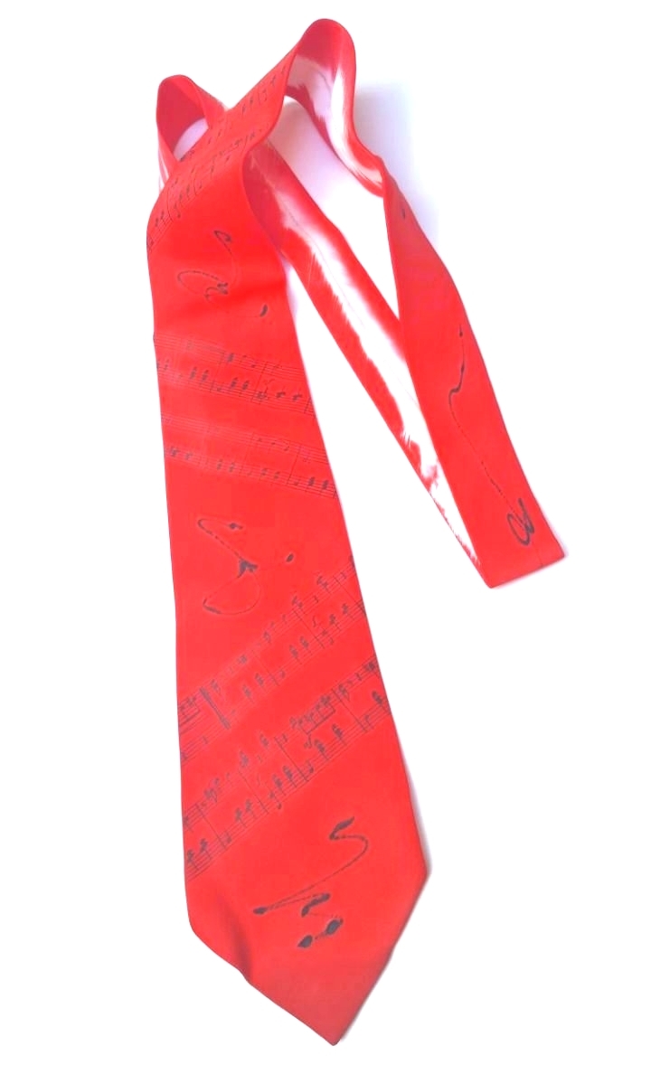 El Yapımı Nota Şerit Desenli İpek Kırmızı Kravat