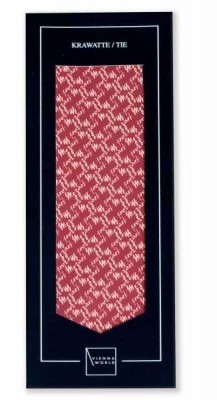 Kırmızı renk üzerine küçük Mozart yazıları olan ipek kravat.Boyutlar: Toplam uzunluk: 150 cm. En geniş alt kısım : 10 cm. En dar üst kısım: 4 cm.