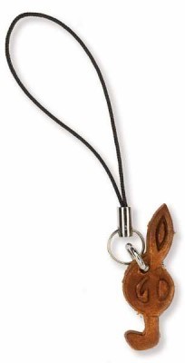 Kahverengi, sol anahtarı şeklinde, deri, cep telefon süsü.