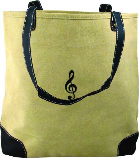 Üzerinde sol anahtarı bulunan, haki renkli, kanvas kol çantası. Boyut:  38,1 x 45,72 cm (15 x 18 inç)