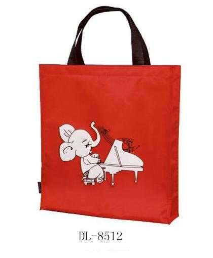 Kırmızı,piyano çalan fil karikatürü baskılı çanta.