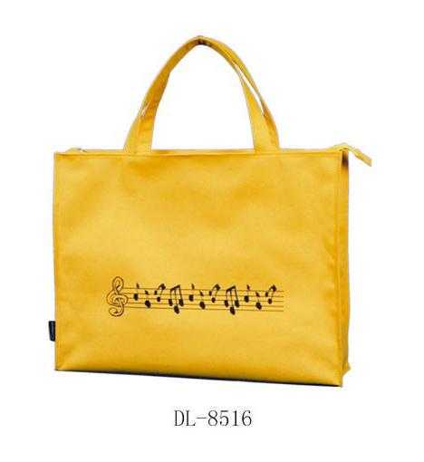 Sarı, notalı taşıma çantası.