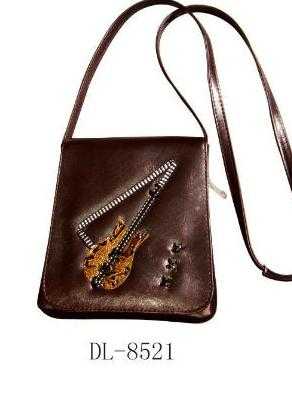 Kahverengi, gitar işlemeli çanta.
