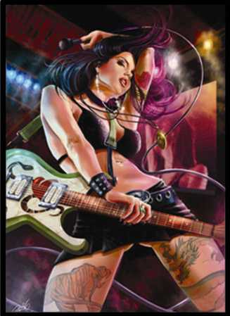 Plastik çerçeveli poster, elektro gitar çalan kadın. Boyut: 30 x 42,5 cm