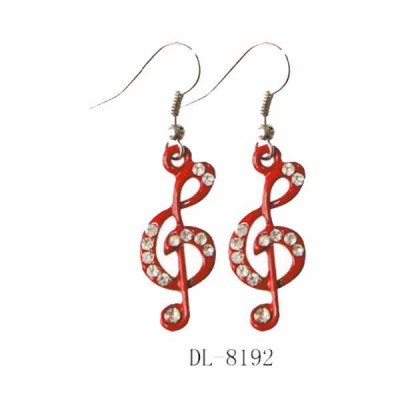 Sert plastikten yapılmış kırmızı sol anahtarı şeklinde, taşlı küpe.