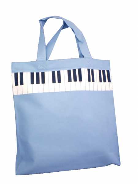 Polyester kumaş, mavi zemin üzerine üst kısmı tuşeli taşıma çantası.