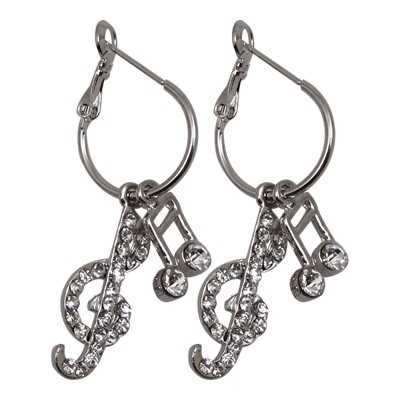 Kristal Taşlı Sol Anahtarı-16 lık Nota Küpe - Gümüş