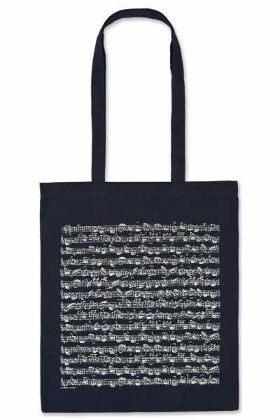 Yüksek kaliteli koton kumaş üzerine Bach’ın “La Minor Keman Konçertosu” notaları baskılı lacivert renkte bez çanta. Notalar her iki yüzde de mevcuttur. Günlük kullanım için pratik bir aksesuar olmanın yanında, müzik sevgisi, zarafet ve kültür ifadesidir.