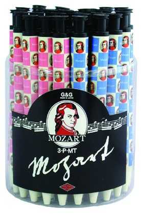 Renkli Mozart resimli, mavi renk, basmalı tükenmez kalem.