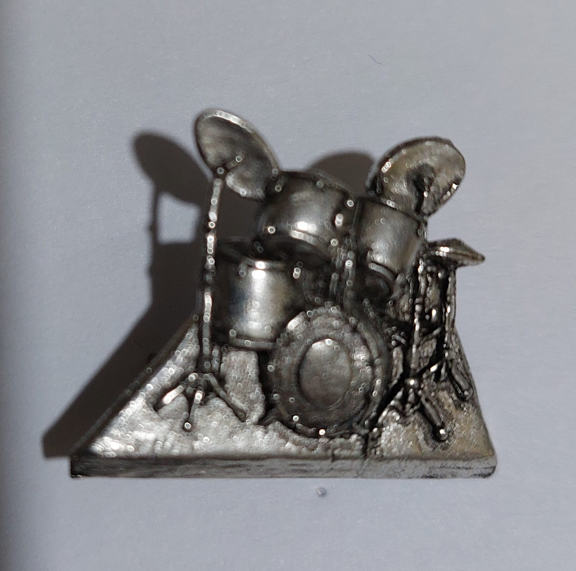 Davul set şeklinde ince detaylarına önem verilmiş, gümüş kaplama, el yapımı enstrümanlı yaka iğneleri.