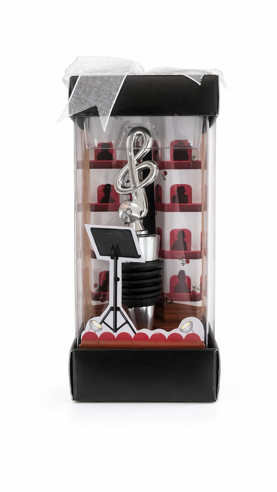 Müzik severler için özel tasarlanan bu zarif şişe tıpası, hem estetik hem de işlevsel bir üründür. Üst kısmındaki parlak sol anahtarı detayı ile dikkat çekerken, şişelerinizi hava almadan koruyarak içeceğinizin tazeliğini uzun süre muhafaza eder.